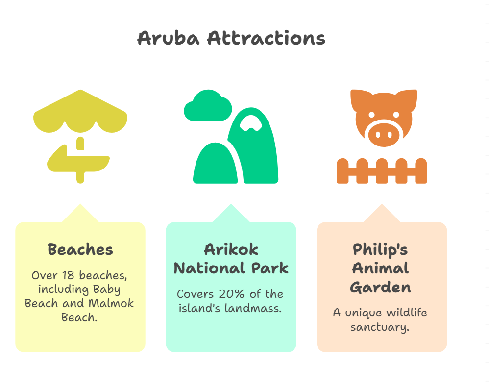 Compare this to Hawaii (mid-Pacific, expensive flights) or The Bahamas (hurricane risks). Aruba wins in convenience + charm.