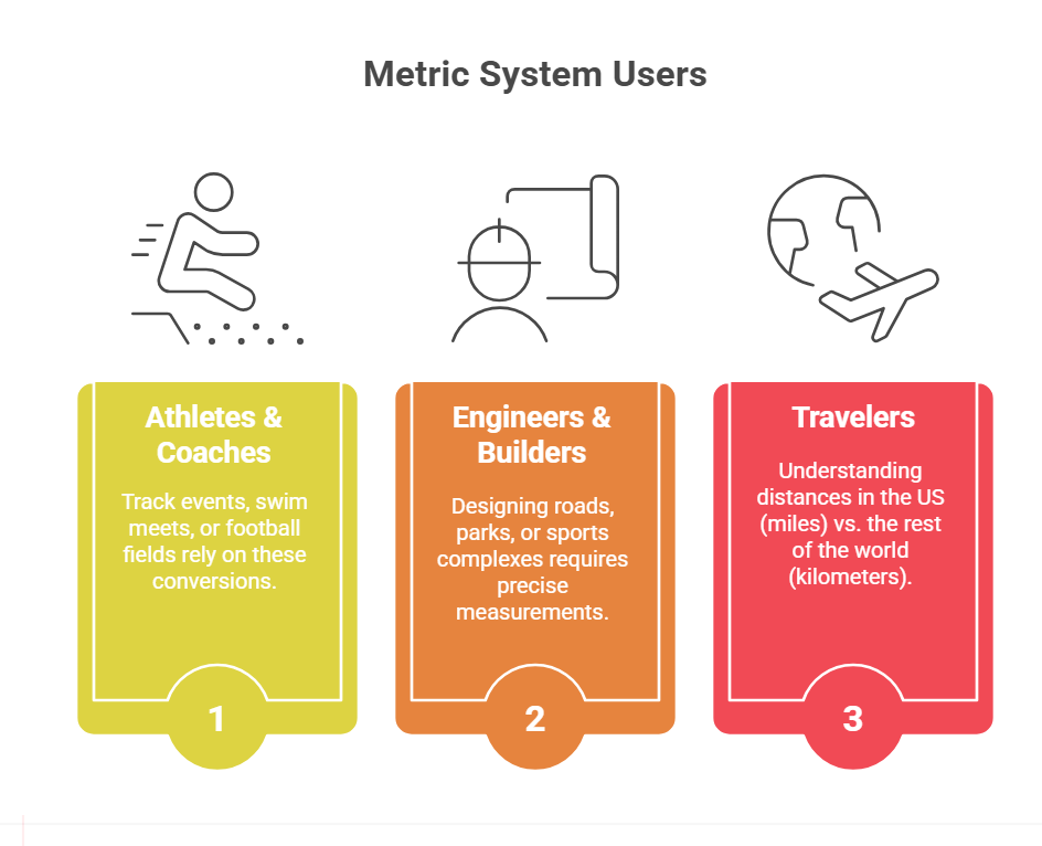 - Athletes & Coaches: Track events, swim meets, or football fields (100 yards) rely on these conversions.
